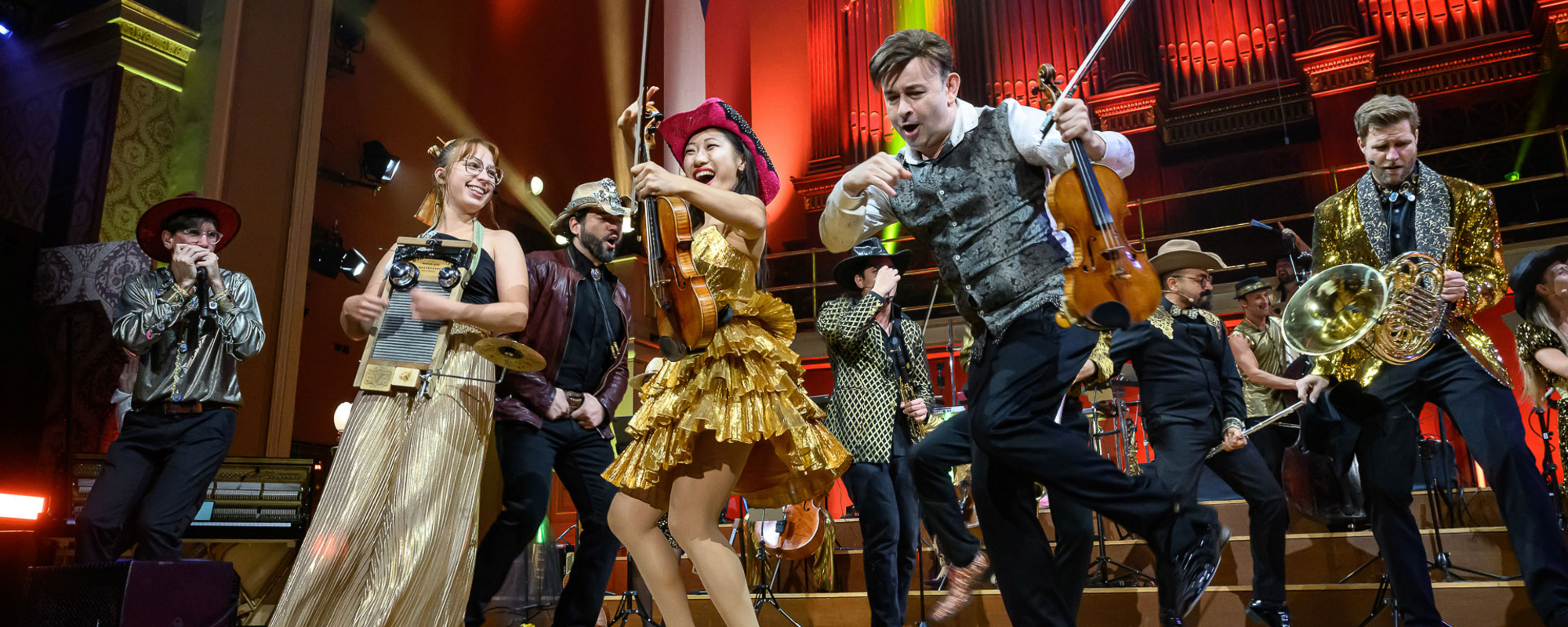 Igudesman & Joo are masters of musical reinvention, crafting bold journeys that defy the ordinary. Together with The Limitless Orchestra, an ensemble of extraordinary multiinstrumentalists, they explore Dvořák’s New World Symphony, revealing its rich blend of Czech and Native American influences and his vision of a new musical tradition. Blending virtuosity, humor and theatrical flair, Sound New World, commissioned by the Dvořák Festival, celebrates rediscovery and leaves audiences inspired.
